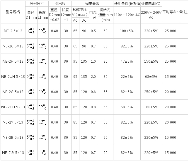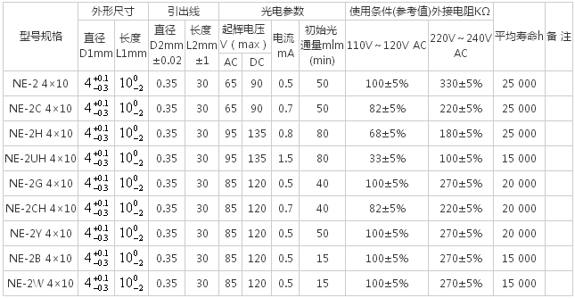 氖燈規(guī)格